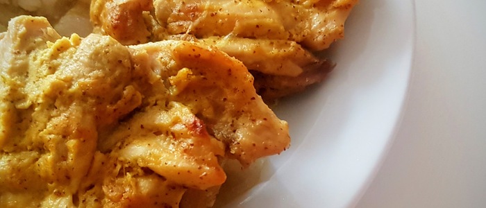 Příprava je opravdu snadná. Do misky dáme jogurt, přidáme lžičku kari koření, prolisovaný česnek a sůl a pepř. Klidně použijte i další bylinky, které zrovna máte doma.