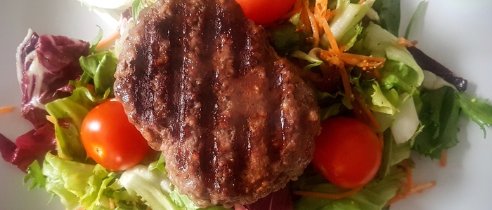 Naservírujeme na talíř a přidáme hamburger. Teď už se můžeme jen pustit do dietního oběda, který určitě nenaruší vaši dietu.