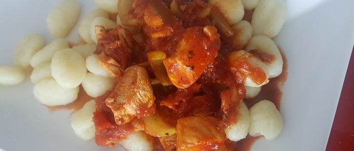 Podáváme s gnocchi a posypané parmazánem. Dobrou chuť!