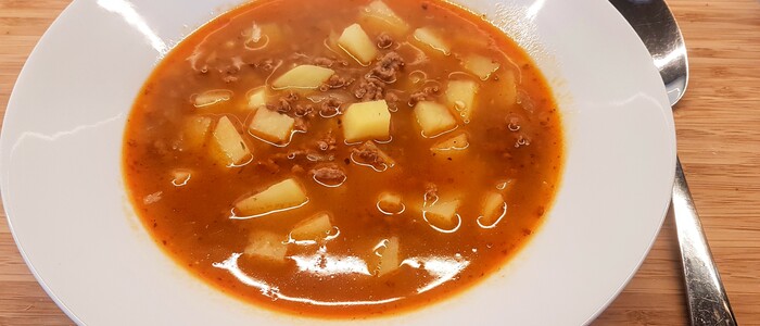 Jakmile brambory změknou máme hotovo a můžeme servírovat. podávat můžete s pečivem a nebo samotné. Díky bramborám zasytí i tak.