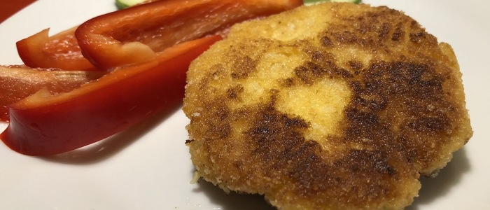 Vytvořte placky, ty pak ještě obalte ve strouhance a pokládejte na pečicím papírem vyložený plech. Zakápněte olejem a pečte na 180 stupňů cca 30 minut. Pokud to Vaše trouba umožňuje, na poslední 3-4 minuty pečte pod grilem, aby strouhanka "zkřupla".