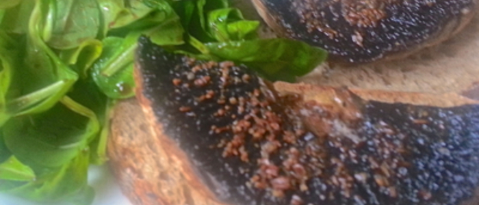 Pak už stačí jen položit na plátek čerstvého žitného chleba, doplnit salátem a můžeme podávat.