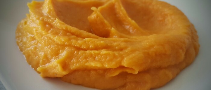 Batáty oloupeme jako klasické brambory. Vrchní slupka se sice dá také jíst, ale v kaši by byla příliš tvrdá. Nakrájíme na malé kousky a dáme vařit do osolené vody. Jakmile jsou batáty měkké, což je skutečně velmi brzy, scedíme vodu a oproti klasické kaši žádnou v hrnci nenecháme.