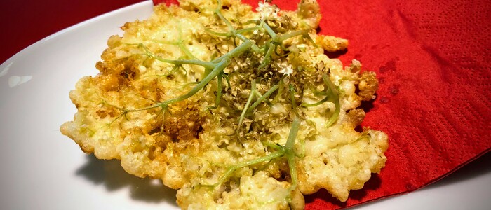 V mléce rozšleháme vejce se špetkou soli. Pak vmícháváme hladkou mouku. Mělo by nám vzniknout těstíčko, zhruba jako na palačinky. Teď už jen stačí květ chytnout za stonek a ponořit do těstíčka, tak aby se všechny malé kvítky hezky obalily. Smažíme na rozpáleném tuku a následně necháme na ubrousku okapat přebytečný tuk. Pokud chcete, můžete během smažení na jedné straně, odstříhat stopku, ale dá se odstranit až na talíři, po usmažení z obou stran.