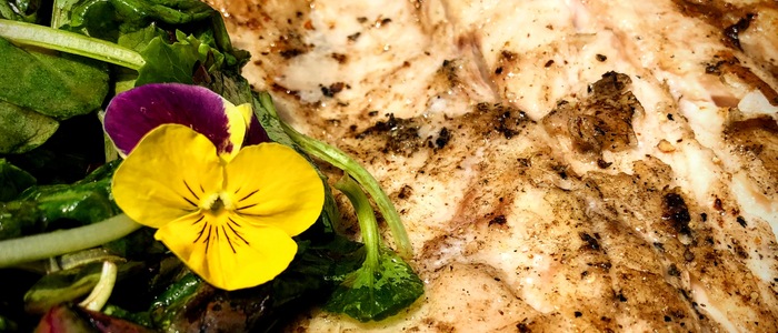 Podle velikosti filetu ji pečeme přibližně 10 minut z jedné strany. Pak už jen pár minut, necháme zatáhnout druhou stranu. Dejte pozor, ať okouna nepřepečete, musí se hezky trhat po vláknech. A máme hotovo. Podávat můžeme například s letní variantou bramborového salátu.
