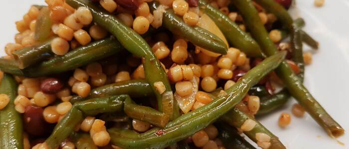 Na oleji osmažíme na drobno nakrájenou šalotku a nasekaný česnek. Přidáme fazolové lusky a společně vše orestujeme. Následně můžeme přidat už připravenou tarhoňu. Promícháme, přidáme zbylé ingredience. Tedy jarní cibulku a fazolky, dochutíme solí a pepřem, necháme prohřát na mírném ohni a můžeme podávat.