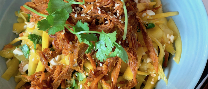 Salát z manga a sušeného hovězího masa vás nádherně osvěží, není těžký na strávení a zároveň tělu dodá porci vitamínů i bílkovin.