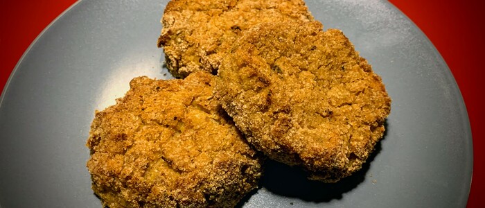 Těsto nyní necháme alespoň 20 minut stát, aby se vločky napily. přidáme vejce, zamícháme a rukou tvoříme karbanátky. Ty obalujeme ve strouhance a klademe na plech s pečícím papírem. Závěrem každý karbanátek trošku zastříkneme olejem a pečeme v troubě cca 40 minut při 180°C. Jakmile karbanátky zrůžoví, můžeme se pustit do servírování.