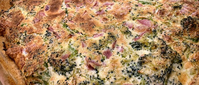 Jakmile je brokolice hotová, pokrájíme ji na menší kousky a smícháme se žloutky spolu se zakysanou smetanou. Přidáme koření, šunku, a vše hezky pomalu promícháme s připraveným sněhem. Pracujeme ale opatrně, abychom sníh zbytečně nezničili.
