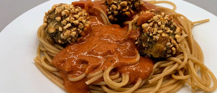 Troubu si předehřejeme na 190 °C a koule pečeme přibližně 15 minut, jakmile oříšky zezlátnou, můžeme maso vytáhnout a rovnou podávat. Skvěle se hodí k rajské omáčce, kterou lze připravit také v dietní variantě.