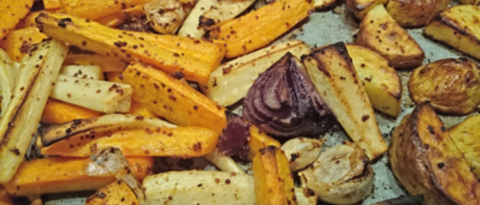 Zeleninu zapečenou s medovohořčičnou omáčkou můžete vychutnat klidně jen tak, ale je výborná i jako příloha k masu.