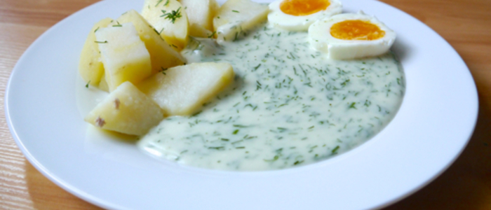 Ve zbývajícím mléku mezitím pořádně rozmícháme mouku a poté přilijeme do hrnce k základu na koprovku. Takto povaříme cca 15 minut na mírném plameni a za častého míchání, aby se mléko nepřichytilo. Nakonec už jen dochutíme solí, muškátovým oříškem a octem. Vše pořádně promícháme, povaříme poslední minutu a máme hotovo.