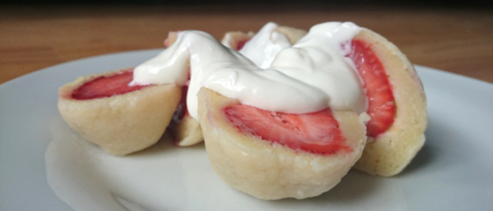 Smícháme v míse všechny suroviny kromě jahod. Vypracujeme z nich těsto a to pak pomocí válečku vyválíme na šířku cca 3 mm. Těsto pak už jen rozřežeme na čtverce - do nich pak budeme balit jahody, proto vyzkoušíme, jaká velikost bude nejlepší.