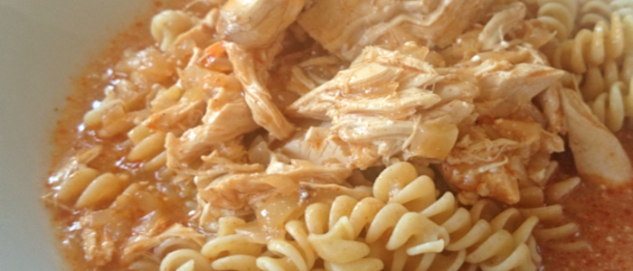 Kuře na paprice je sice výborné i jen tak samotné, nám ale chutnalo s celozrnnými těstovinami.