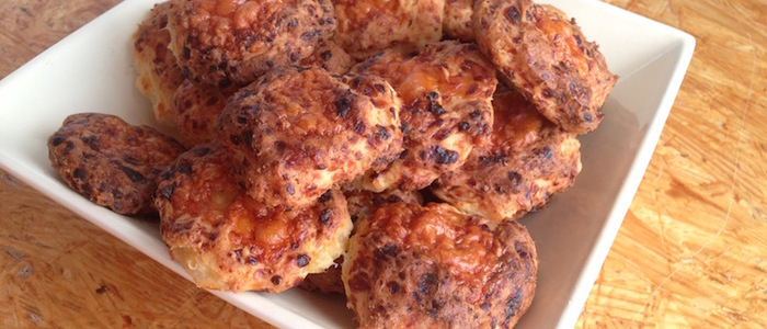 V míse smícháme mouku, sůl a jedlou sodu. Máslo nakrájíme na kostičky a přidáme do mísy. Vše promícháme ručně, abychom dostali směs vypadající jako drobenka. Tvrdý sýr nastrouháme najemno a spolu se sýrem cottage přidáme do mísy. Vše umícháme do těsta.