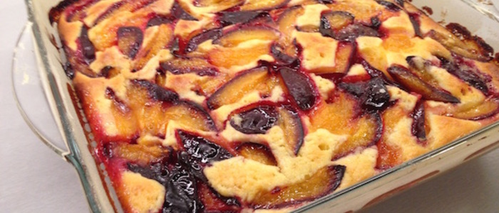 Mouku smícháme s práškem do pečiva a vanilkovým pudinkem. Poté vše postupně přimícháme ke zbytku ingrediencí na těsto a pořádně našleháme. Těsto pak rozetřeme do vymazané a moukou vysypané formy na pečení. Na vrch hustě poklademe ovoce a nakonec zasypeme vanilkovým cukrem, aby vznikla krusta.