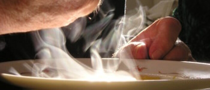 Polévku z grilované červené papriky a květáku podáváme dozdobenou rozdrobeným kozím sýrem. Dobrou chuť!