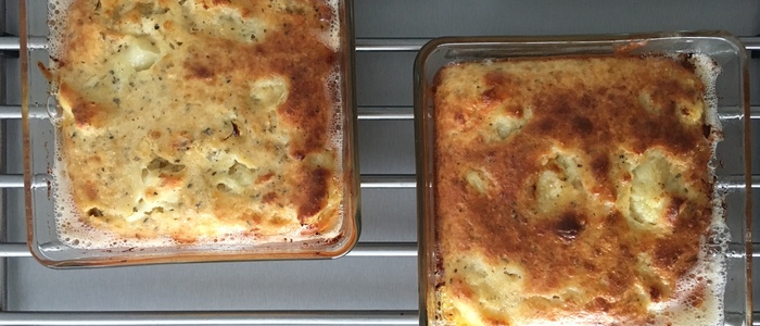 Květák rozebereme na menší části a necháme povařit. Nesmí být zcela měkký, ale už se musí dát jíst. Na zkus by tedy měl klást odpor, ale úplně se nerozpadat. 5 minut by vám mělo stačit. Mezitím si veškeré ingredience, mimo květáku, smícháme a pečlivě prošleháme. Zapékací misky vymažeme a vysypeme strouhankou. Do každé položíme růžičky předvařeného květáku a zalijeme směsí mléka, vajec, strouhanky a koření. Nahoru můžeme přidat ještě trošku sýra a dát zapéct. Pečeme ve vyhřáté troubě, cca 30 minut na 180°C.