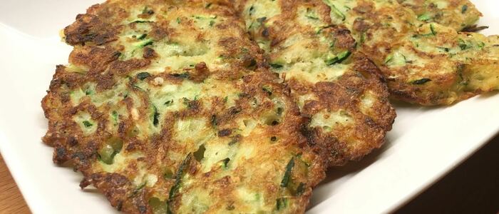 Cuketu nastrouháme na hrubém struhadle, klidně i se slupkou. Do stejné mísy přistrouháme brambory, ty už ale na jemném struhadle. Osolíme a necháme odstát přibližně 10 minut. Potom slejeme vodu ze směsi a opatrně vymačkáme zbytky. Teď už jen přidáme žloutky, pepř a majoránku s utřeným česnekem. Promícháme s moukou a ze zbylých bílků vytvoříme hustý sníh. Vytvořený sníh opatrně zapracujeme do těsta a můžeme začít smažit. Ideální je dělat měnší placky na rozehřáté keramické pánvi, kterou jsme jen lehce potřeli olejem.