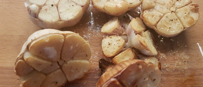 Česnek neloupeme a pouze jej podélně rozkrojíme. Vložíme do zapékací misky, postříkáme olejem, trošku osolíme a vložíme do trouby. Pečeme přibližne 30 minut na 180°C, dokud není dužina měkká, ale pozor ať nám česnek příliš nezčerná.