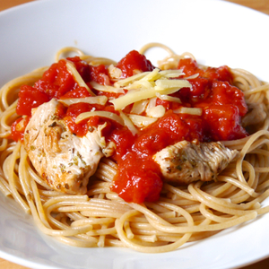 Dietní recept: celozrnné špagety s krůtím masem na rajčatech